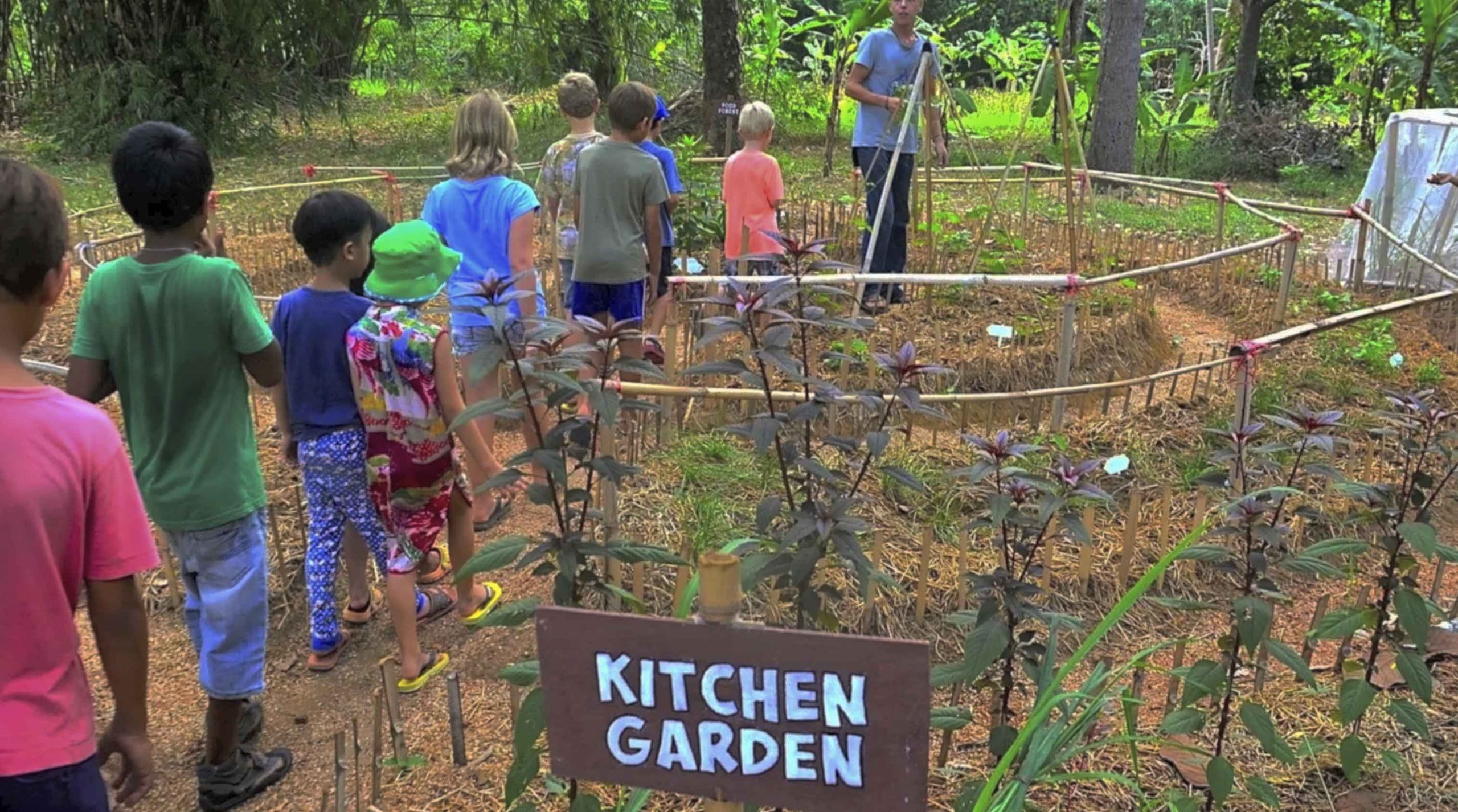 Our jungle farm is Now open to members and visitors, our jungle farm features several unique areas including a large wooden hut, four-beds vegetable garden following a crop rotation and an orchard with a backdrop of the surrounding mountains, native plants, bees and sacred trees.